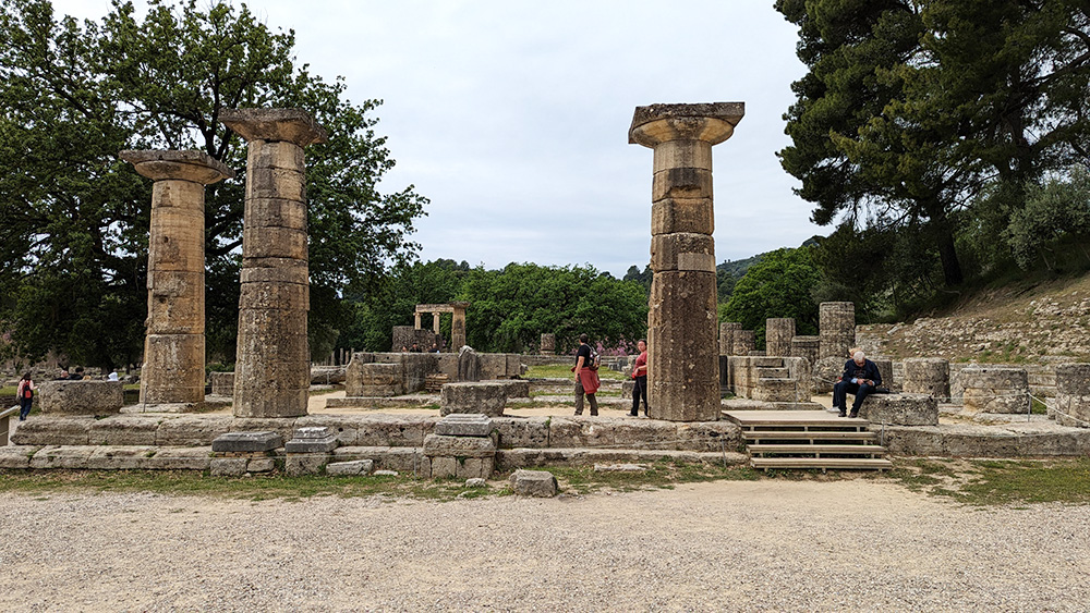 Buiten liggen de resten van de Zeus-tempel, het stadion, het palaistra en de tempel van Hera. Met wat verbeelding zie je de atleten nog steeds hun rondes lopen. Het is een plek waar religie, sport en politiek ooit samenvielen, en waar de echo van die samenkomst nog altijd voelbaar is.