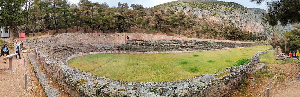 Atletiekstadion dat boven het heiligdom van Apollo ligt. (foto: CVR Magazine)