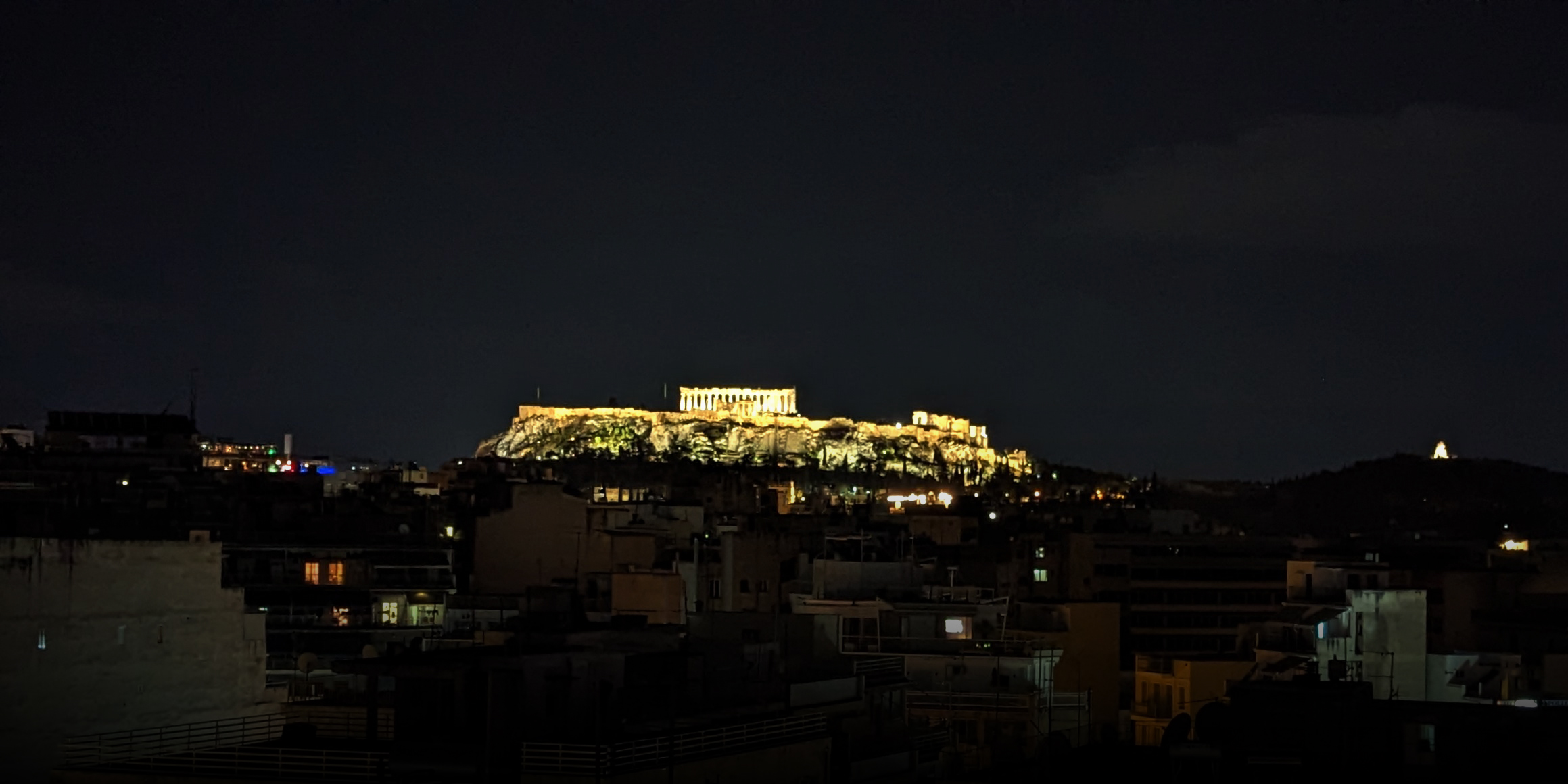 Zicht op de Acropolis vanaf de rooftopbar van Hotel Novus (foto: CVR Magazine)