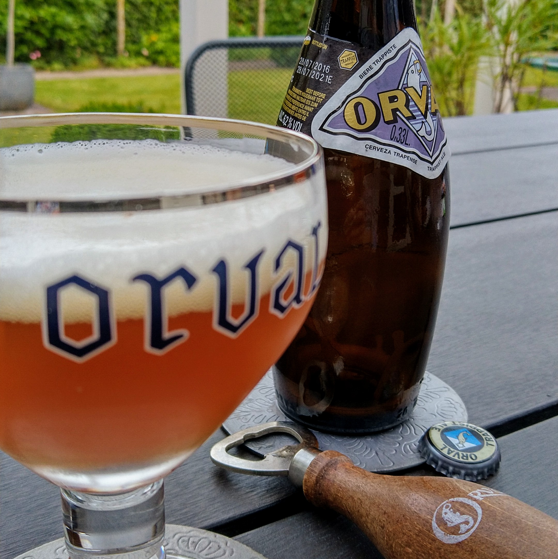 Schenk het bier langzaam in een Orvalglas zonder de fles te schudden en door het horizontaal te houden. Het glas lichtjes schuin houden en het recht brengen naarmate het volloopt. Officieel wordt aangeraden 1 cm bezinksel in de fles te laten en dit apart op te drinken, maar strikt noodzakelijk is dat niet.