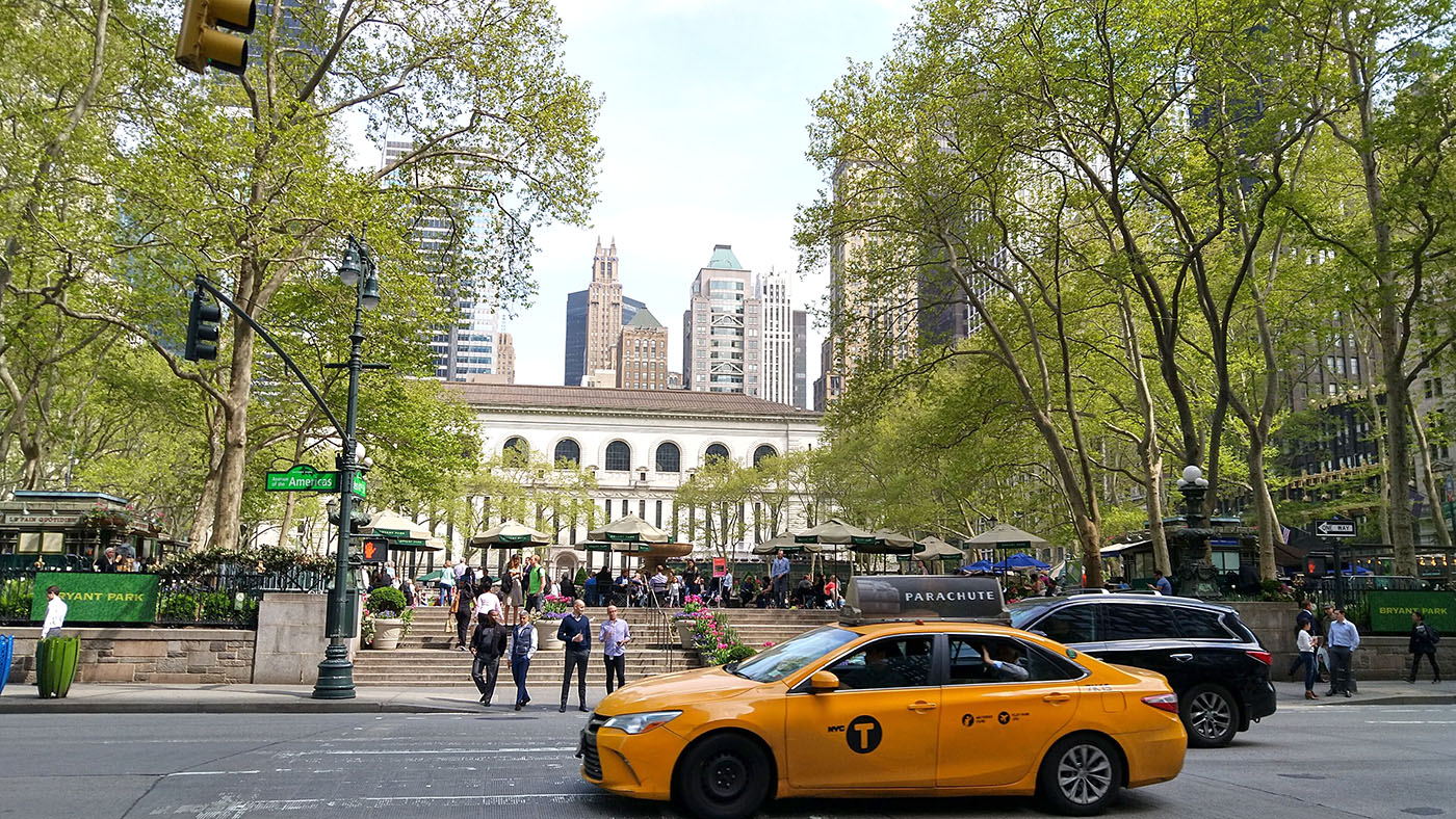 De dag eindigt in het gemoedelijke Bryant Park met de New York Public Library. Aan dit park liggen ook verschillende restaurantjes waaronder Bryant Park Grill, Le Pain Quotidien met een taartje als desert bij Lady M.