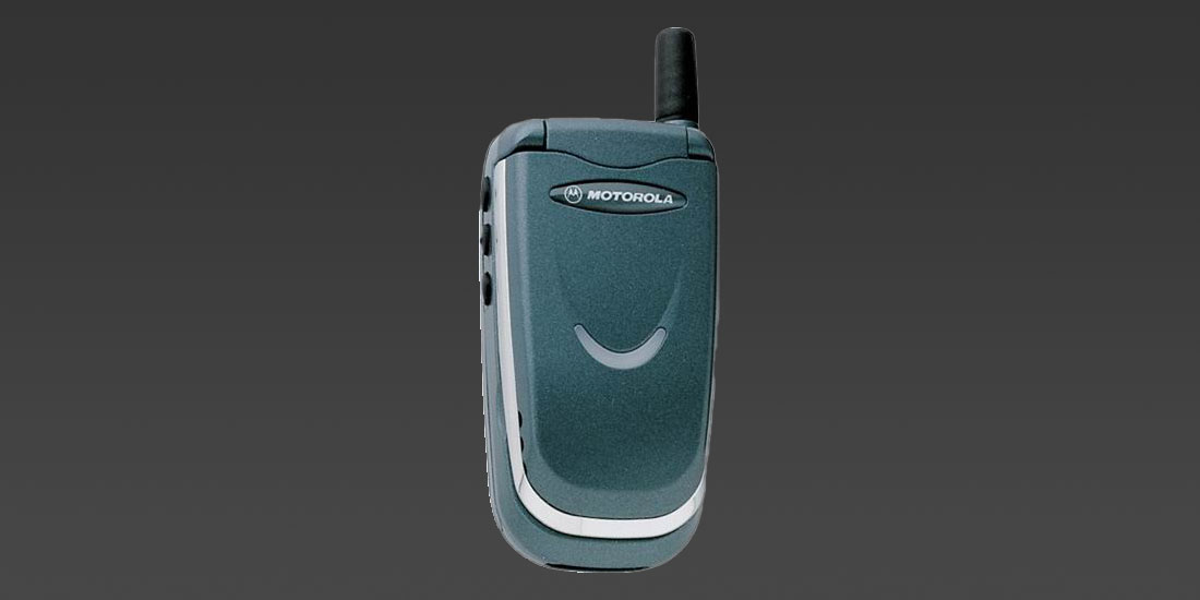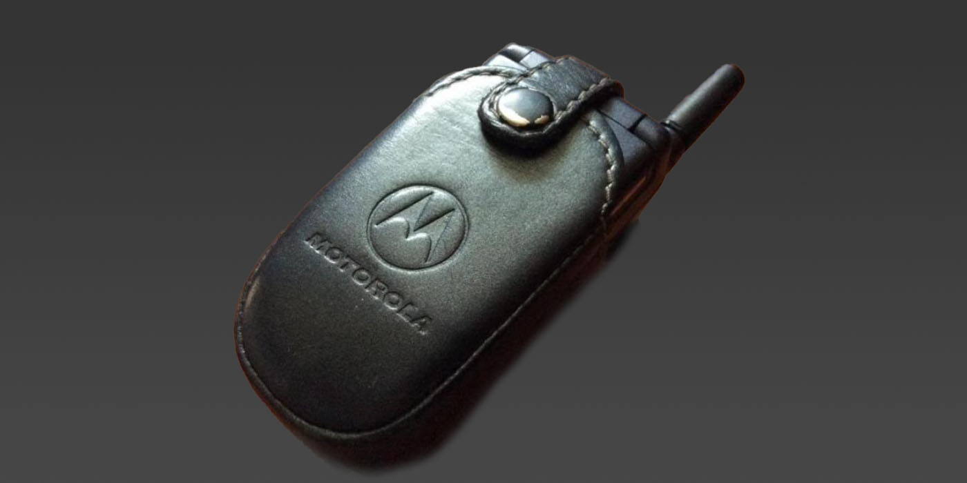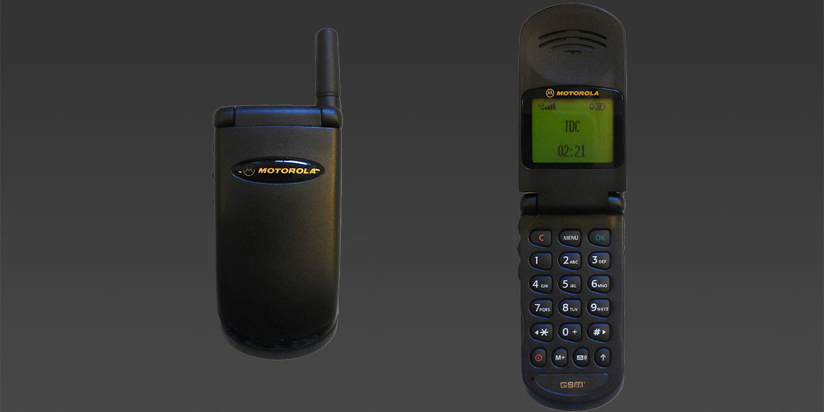 Motorola V50Door mijn werk moest ik meerdere keren per maand naar Duitsland en Frankrijk. Om ook daar telefonisch bereikbaar te zijn, kreeg ik de"oude"Deze telefoon was slechts een paar maanden oudtelefoon van mijn direct leidinggevende en mocht ik mijn abonnement overzetten naar een zakelijk abonnement. De telefoon was een Motorola V50, op dat moment een zeer trendy gadget om dat hij zo klein was. Maar vooral omdat het een telefoon was van het type clampshell waarbij je de telefoon moest openklappen om een gesprek aan te nemen. Om het toestel altijd direct bij de hand te hebben, kon je er een hoesje bij bestellen die je aan je riem bevestigde.