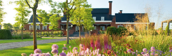 Statige Saksische boerderijen met rieten daken rond groene brinken in een prachtig landschap. Dat is