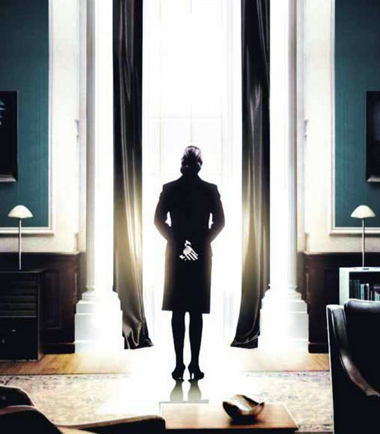 Statsminister Birgitte Nyborg (Sidse Babett Knudsen) in de voor haar karakteristieke houding voor het raam.