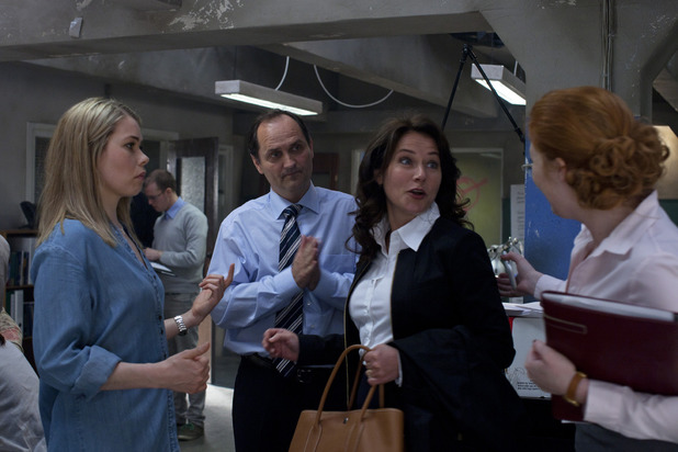 Onder de vele bekende gezichten die terugkeren zit ook Katrine Fønsmark die worstelt om de nieuwszender TV1 weer uit het slob te trekken.