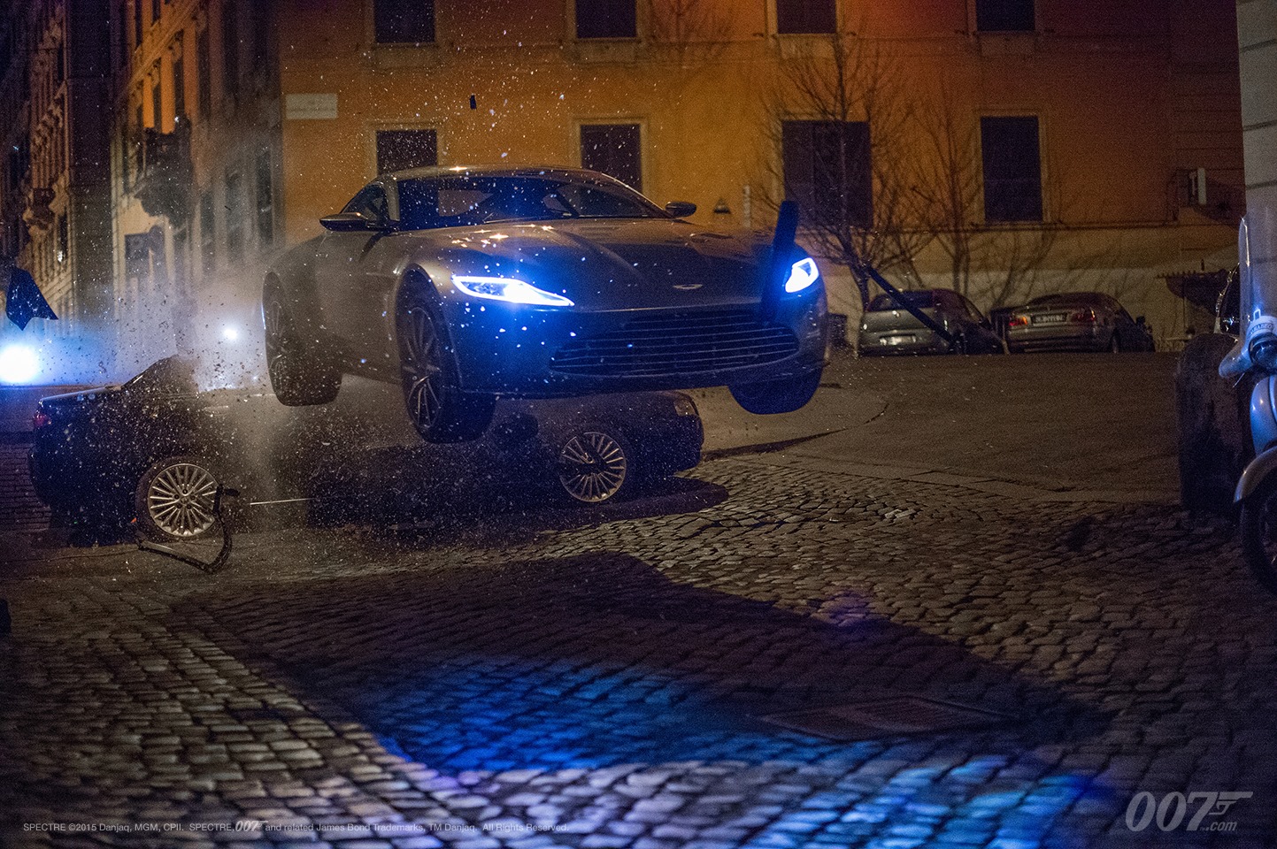 Hetzelfde beeld zien we terug in Spectre, maar nu is het een Aston Martin DB10 in de straten van Rome.