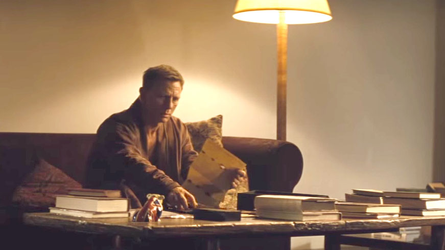 In de teaser trailer zien we dat Bond van Moneypenny een doos krijgt met spullen die overgebleven zijn uit zijn ouderlijk huis Skyfall uit de gelijknamige film. Wanneer hij door deze spullen kijkt, staat de bulldog die M aan Bond naliet op de salontafel van Bonds appartement.
