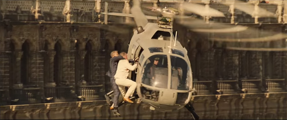 In Spectre zien we Bond op een soortgelijke wijze aan een helikopter hangen als in For Your Eyes Only.