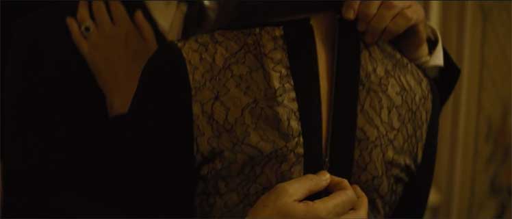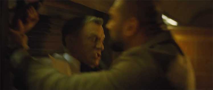 Niet helemaal op dezelfde manier, maar visueel wel hetzelfde op film vastgelegd doet James Bond hetzelfde bij Lucia Sciarra.