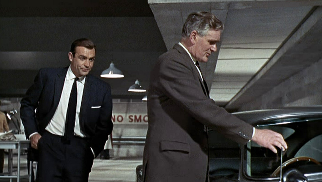 In Goldfinger krijgt James Bond voor het eerst de beschikking over een Aston Martin. Deze DB5 is uitgerust met verschillende extra snufjes zoals machinegeweren, kogelvrij glas en een schietstoel om ongenode passagiers uit de auto te schieten. Deze auto wordt door Q aan James Bond voorgesteld in de werkplaats van Q.
