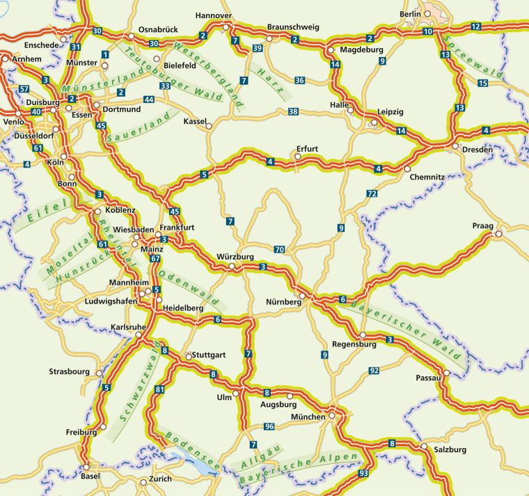 61. Daar is het redelijk rustig (ook in de spits), maar hier geldt voor een groot deel een maximum snelheid van 100 km/uur en beschikt maar over twee rijstroken, waardoor er vaker geremd wordt voor inhalend vrachtverkeer. Bij het Formule 1 circuit van Hockenheim gaat de