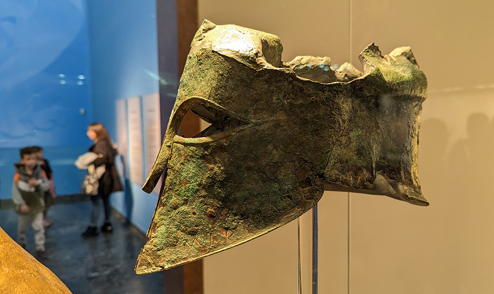 De helm werd door Miltiades als offer gegeven aan de tempel van Zeus in Olympia.