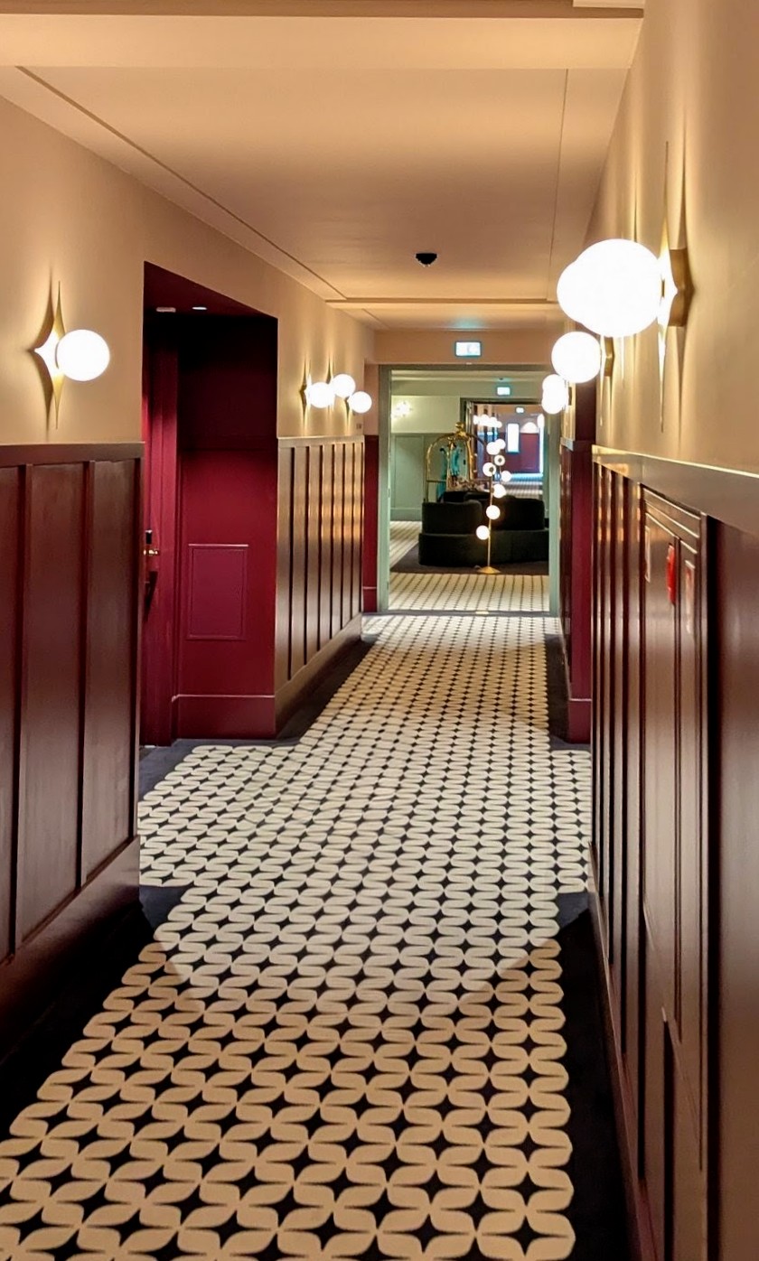 In Hotels zie je vaak tapijt op de gangen omdat dit het geluid dempt en het comfort verhoogt. Het wilde patroon maskeert de mogelijke vlekken en slijtage, waardoor de vloer langer representatief blijft.