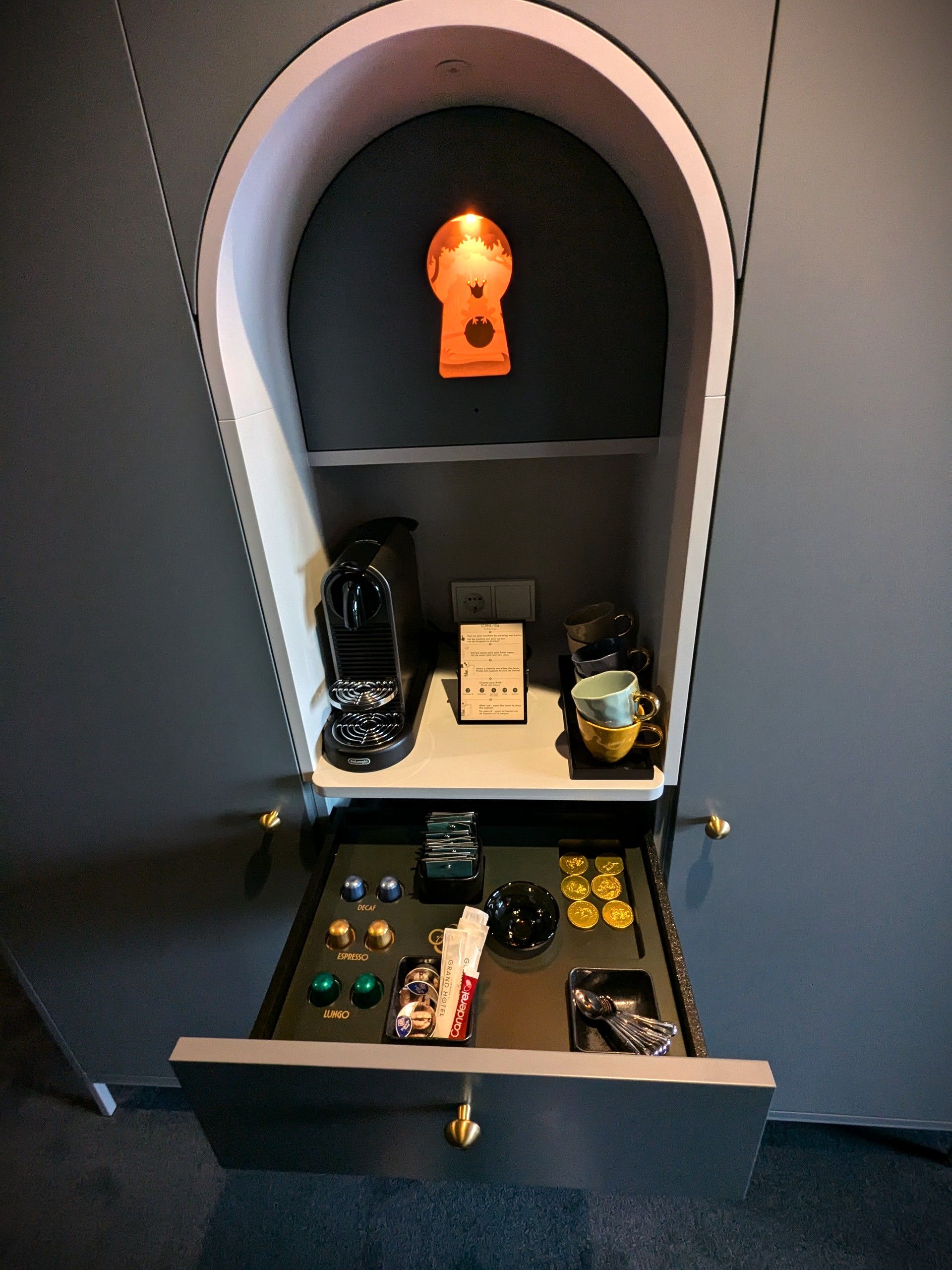 Kast met doorkijkje en Nespresso koffiemachine (foto: CVR Magazine)