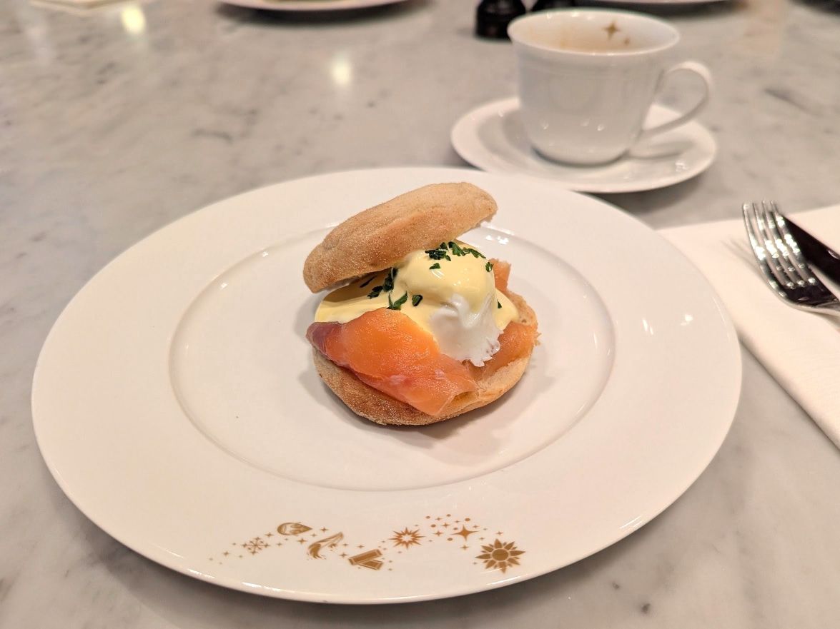 Daarnaast zijn er kleine gerechten zonder meerprijs bij te bestellen zoals eggs Benedict met zalm en hollandaisesaus, wentelteefjes met kaneel en suiker en scones met clotted cream en jam.
