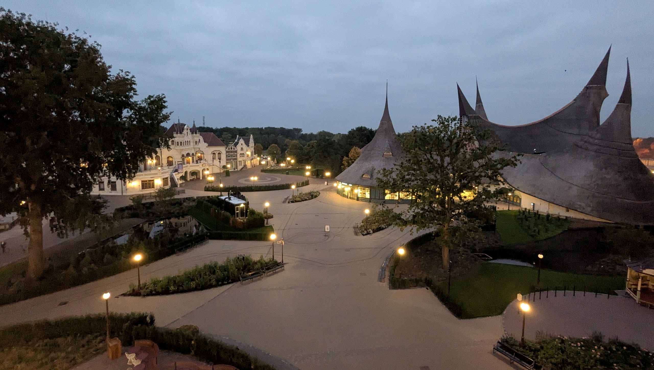 De route naar het hotel is al een ervaring op zich. De route loopt om de hele Efteling heen en na een slagboom met kentekenherkenning kom je bij een tunneltje onder de Efteling Boulevard waar zich een wereld ontvouwt die losstaat van het park, maar er ook onlosmakelijk mee verbonden is. Parkeren gebeurt op een rotonde direct voor de imposante gevel. Daar wacht de piccolo, die niet alleen de bagage overneemt, maar ook de auto via valet parking laat verdwijnen alsof het vanzelfsprekend is.