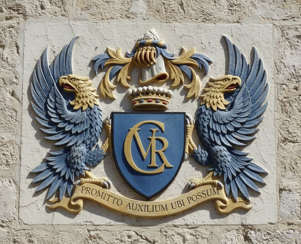 Wapen van de Club Vin Rouge zoals aangebracht in de gevel van de sociëteit (foto: CVR Magazine)