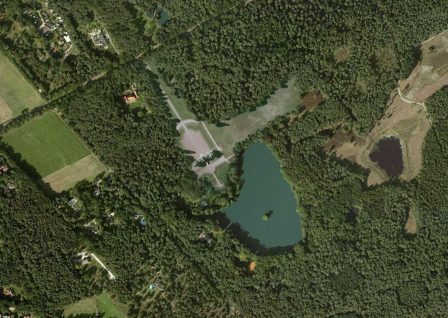 De sociëteit op de Molenheide in Mierlo; gezien vanaf de Geldropsweg met op de achtergrond het Galgenven en in de verte de Strabrechtse Heide (foto: CVR Magazine)
