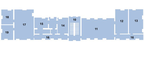 | 10. Trappenhuis 11. Wapenzaal 12. Royal Gleneagles suite | 13. Sacher Wien suite 14. Reisbureau 15. Thuisservice | 16. Galerij 17. Sportcentrum 18. Ritz Paris suite 19. Adlon Berlin suite | |
